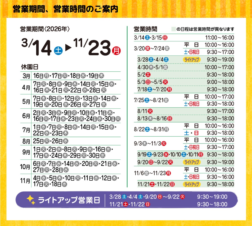 【2026シーズン】2026年3月14日(土)~11月23日(月)